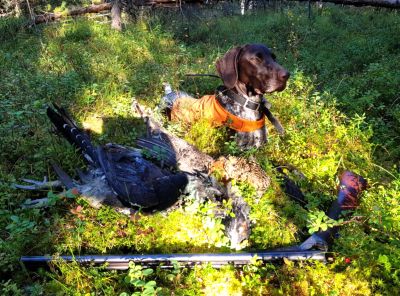 Fick en fin bild på Michrima Iris (Lita) då husse skjutit dubblé på tjäder.